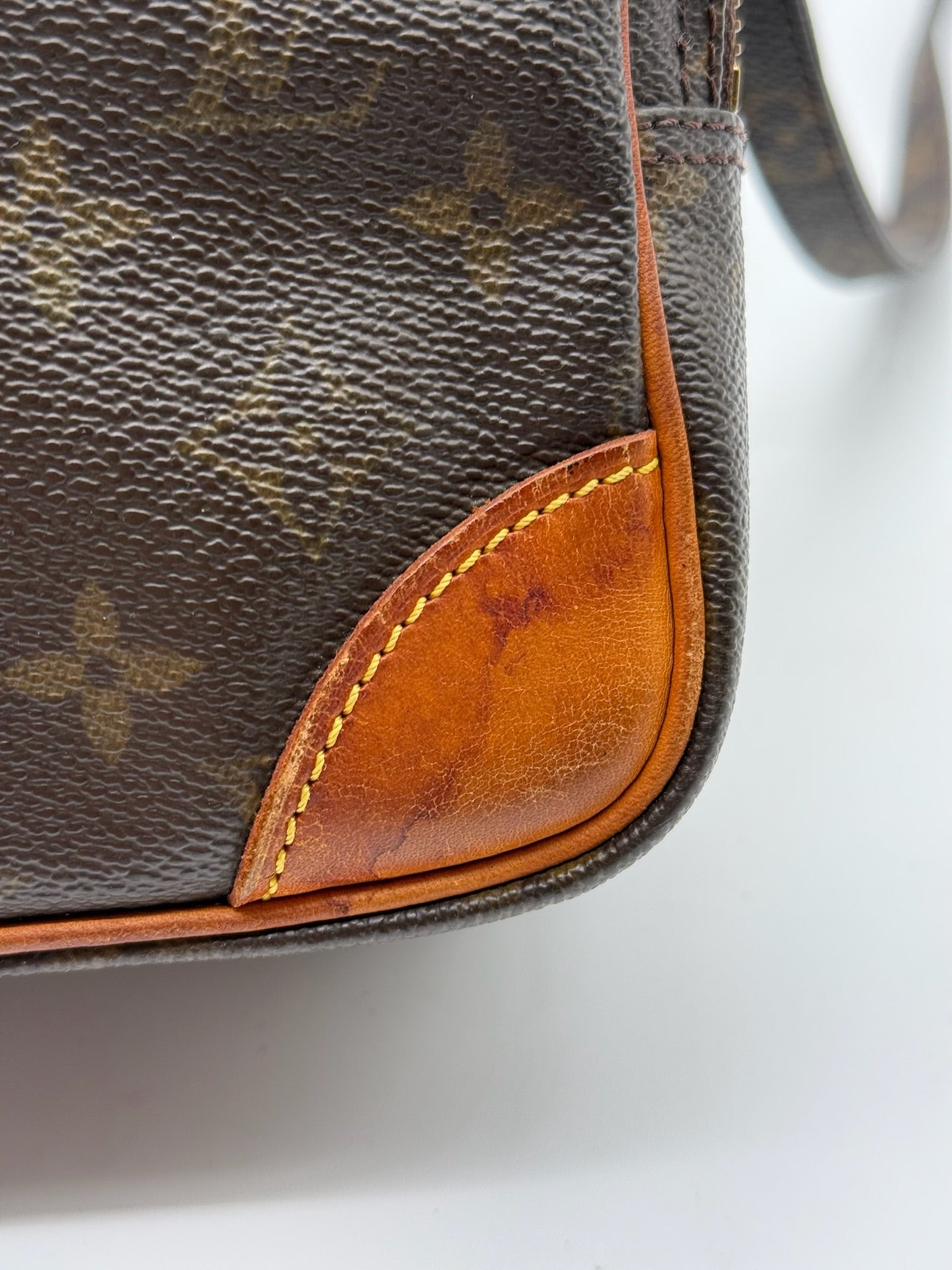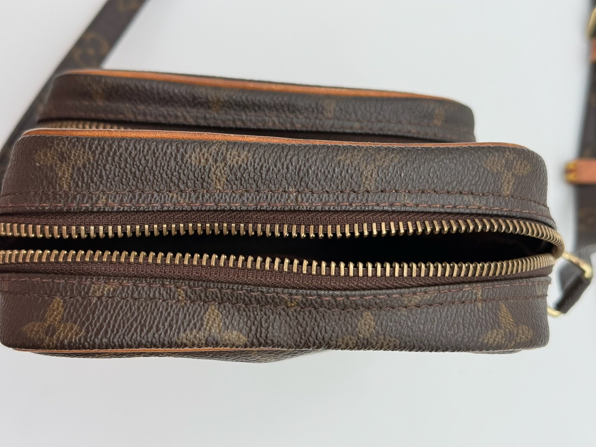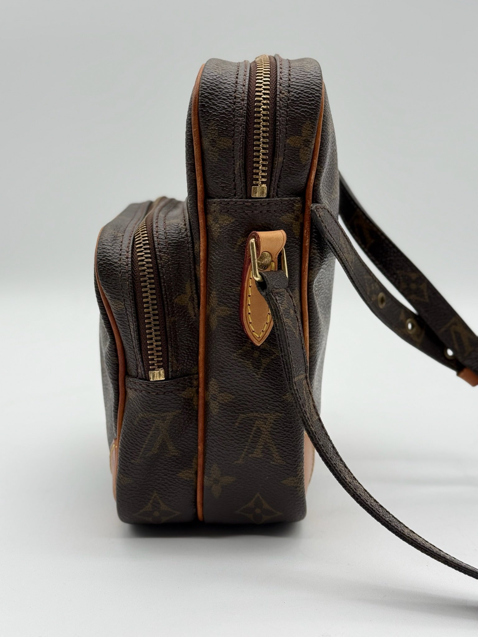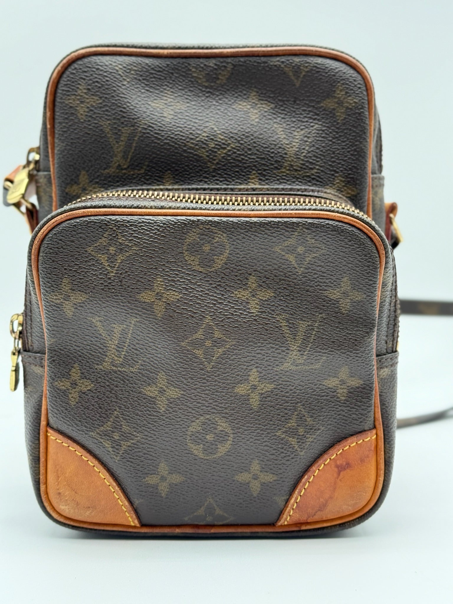 A timeless Louis Vuitton classic, this vintage Amazon crossbody bag features the iconic Monogram canvas paired with beautifully aged vachetta leather. The leather has developed a warm honey patina, adding to its authentic vintage character.