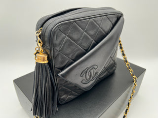 Chanel Vintage Leather Matelasse Coco Mark Tassel Chain Bag