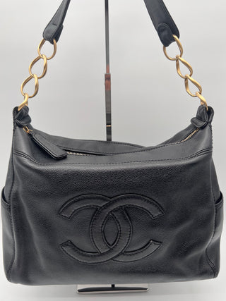 CHANEL Timeless Caviar Leather Ring Chain Satchel Bag Black