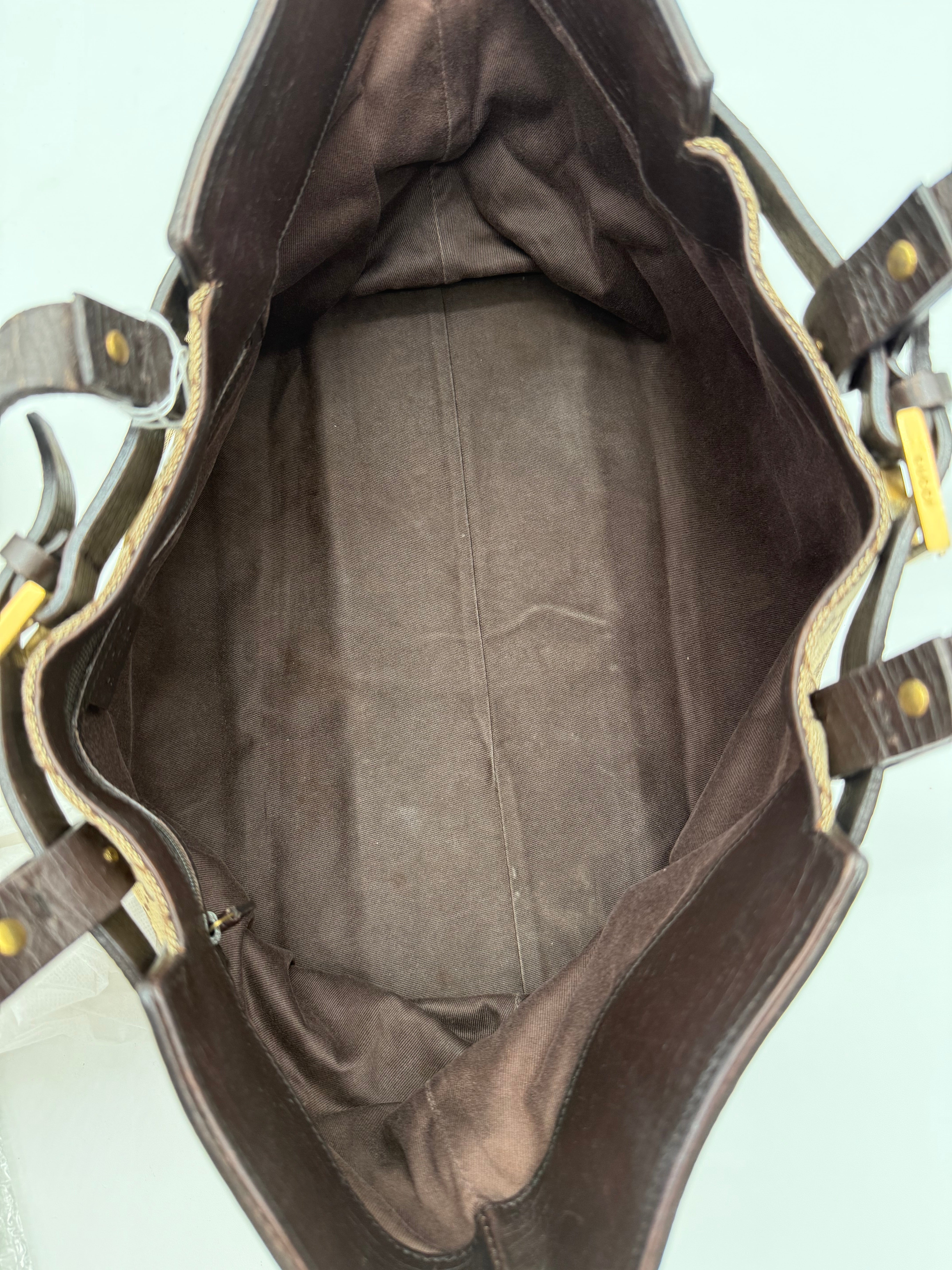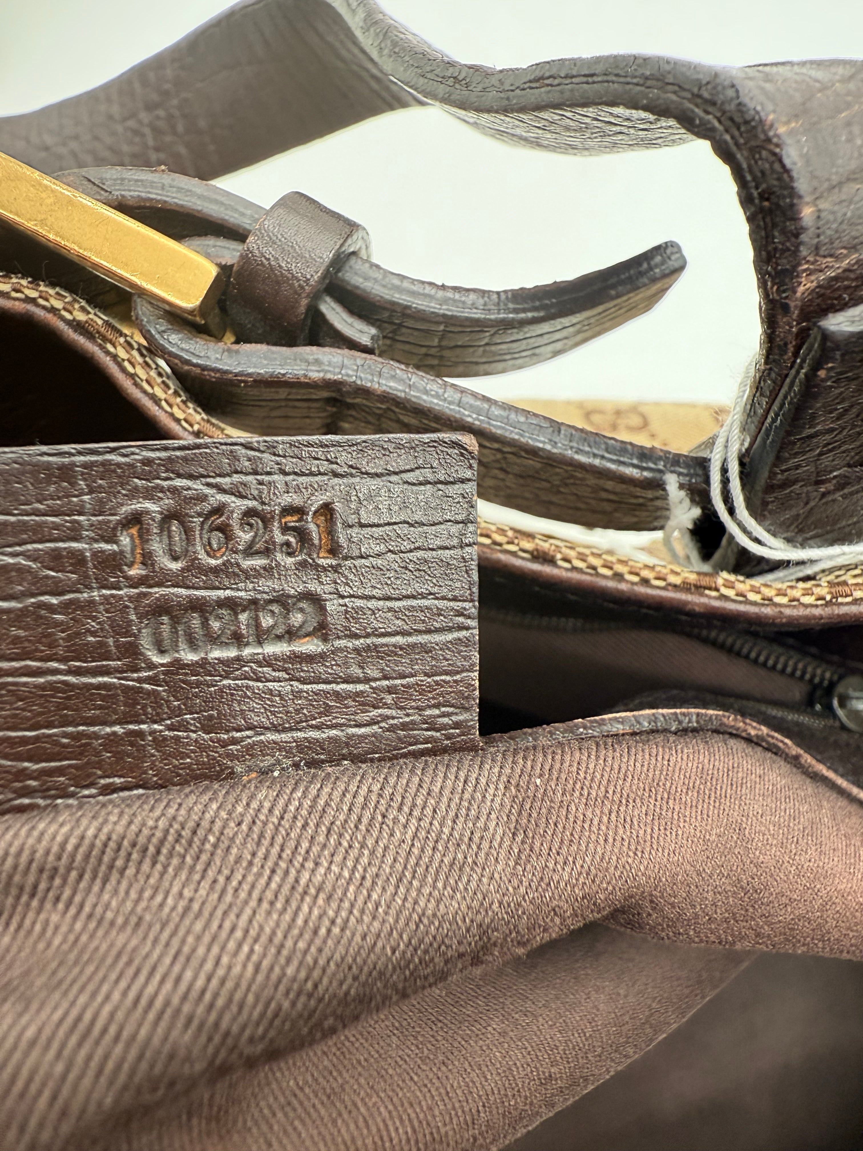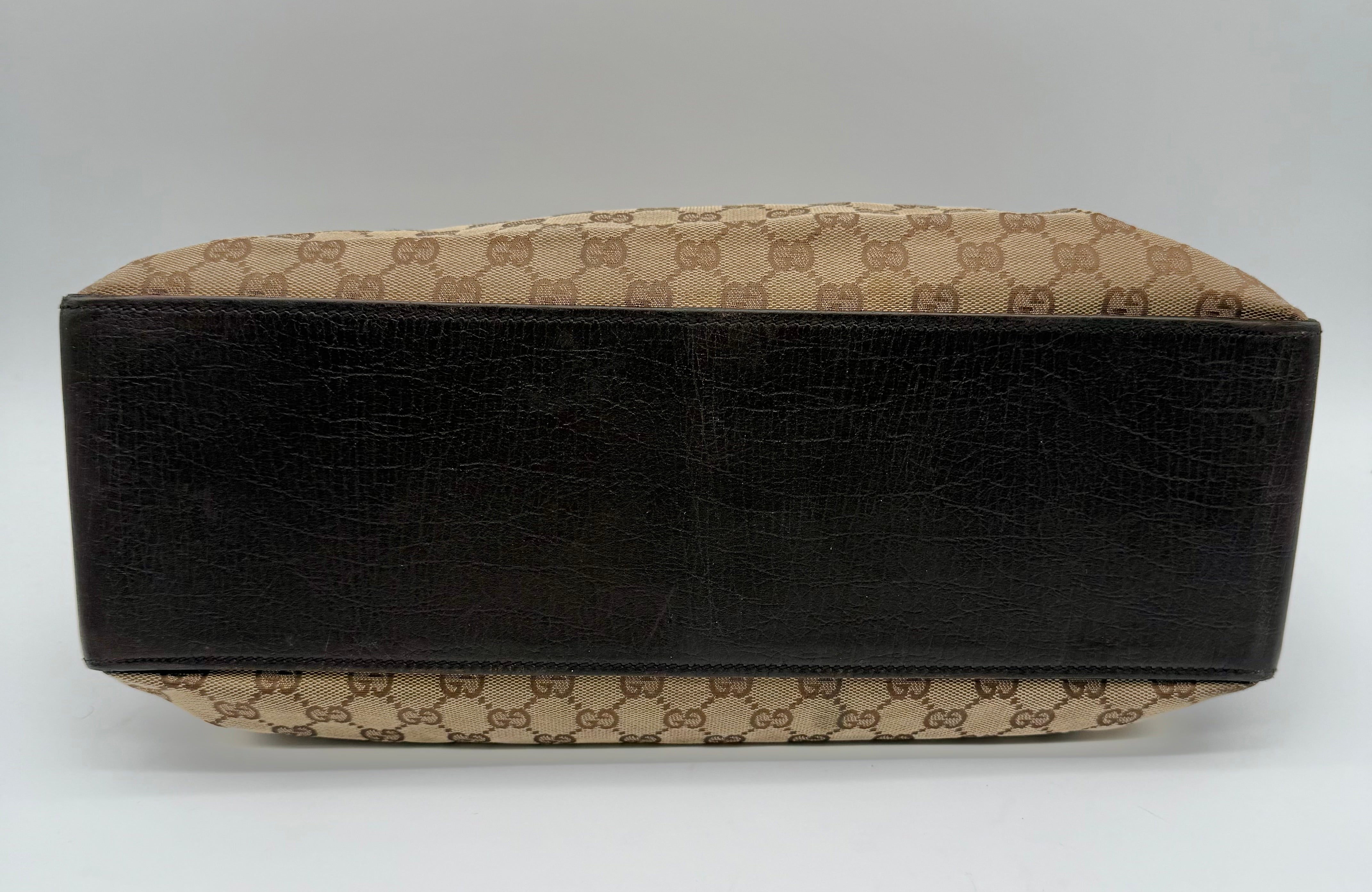 This Gucci handbag wears its history gracefully — the textured canvas and gentle slouch create a stylish, lived-in look while the intact glazing, solid leather, and functional hardware mean it’s ready to be carried and enjoyed.
