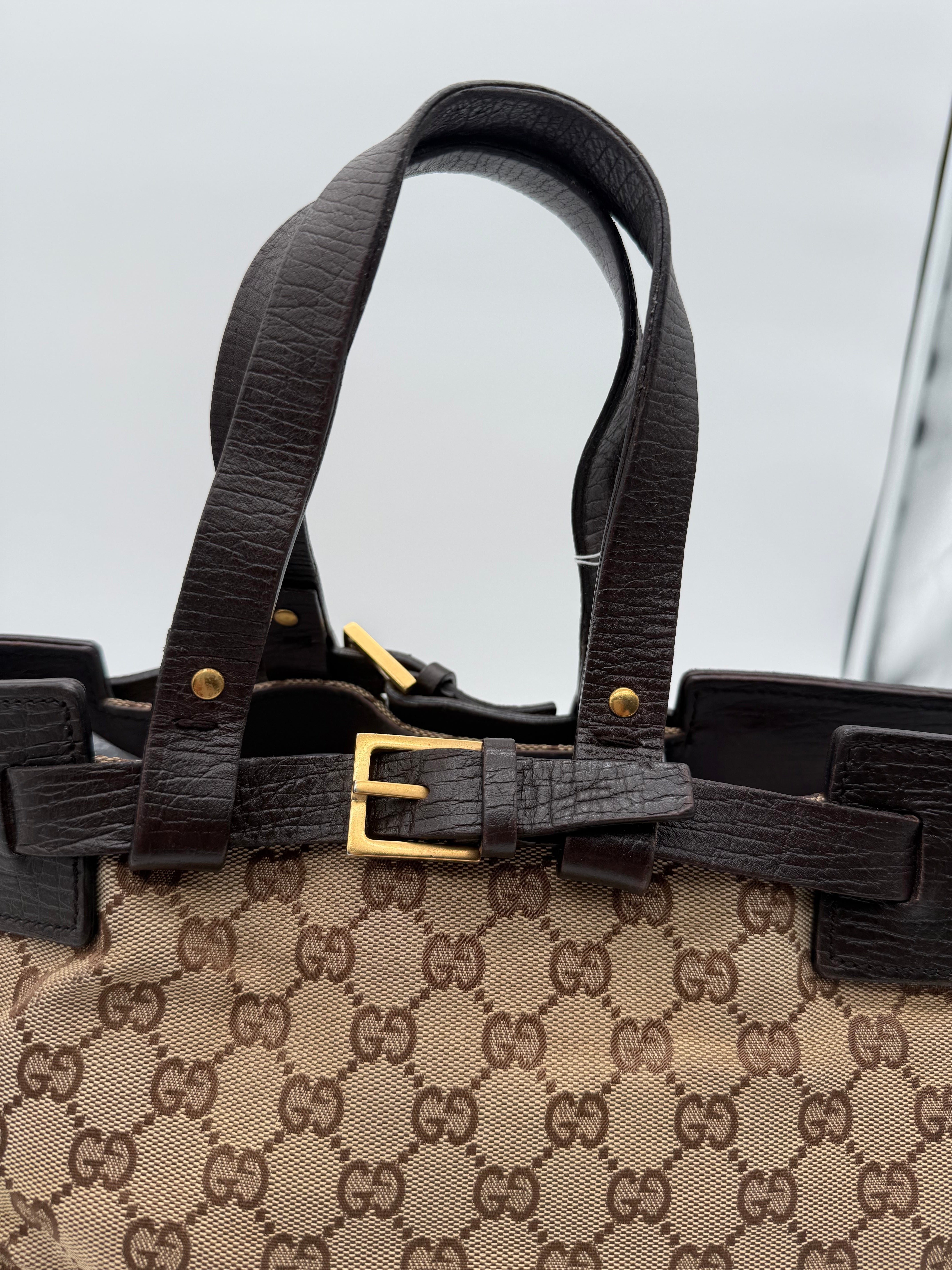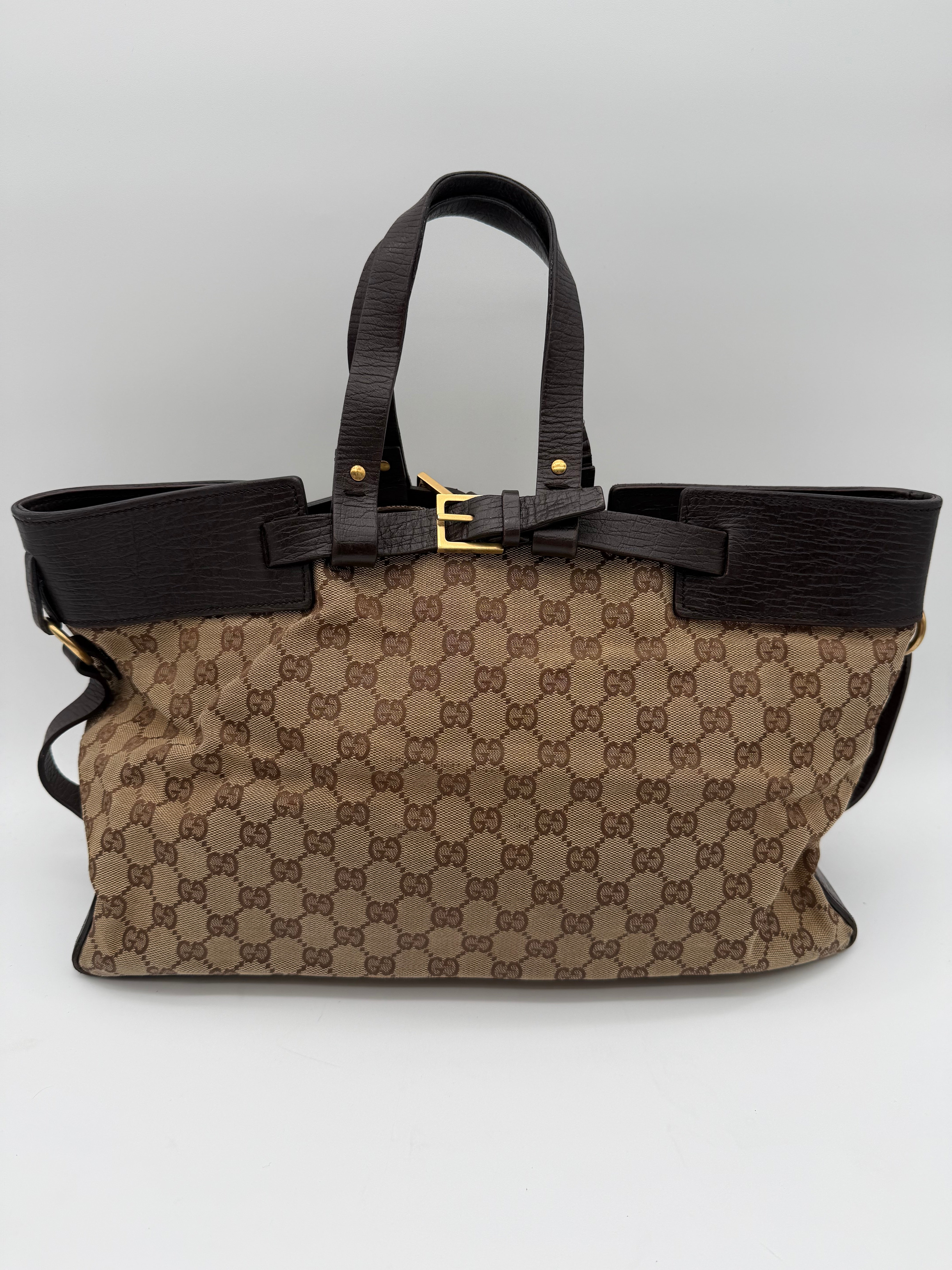 Vintage Gucci Buckle Canvas Handbag — Pre-Owned