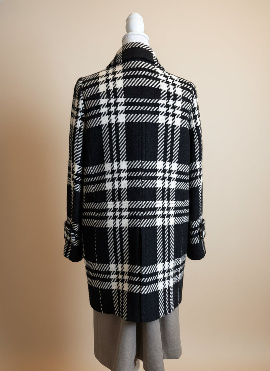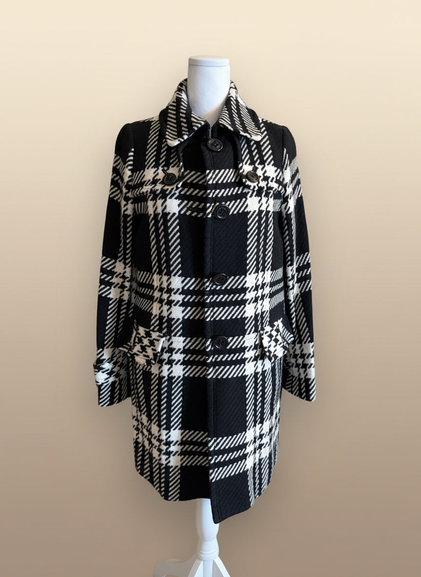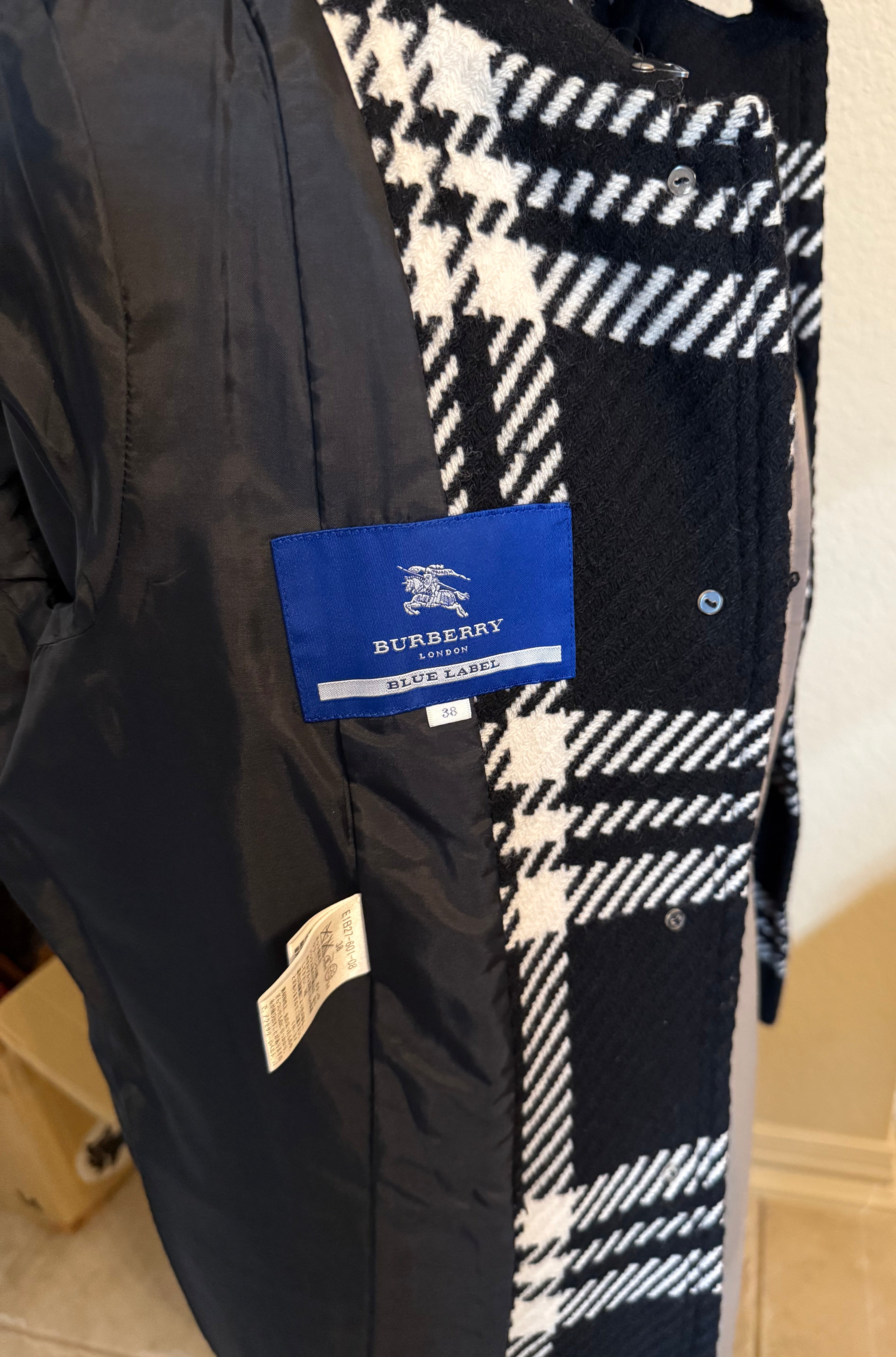 Burberry Wool Blend Black & White Plaid Women’s Peacoat – Burberry London Blue Label (Size 38 / US 6)